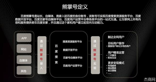 最近發(fā)現(xiàn)很多小伙伴都在問一個問題:熊掌號是什么?都是百度旗下的,和百家號又有什么區(qū)別呢?百度熊掌號的推出,很多地方都做出了較大的改變,依杰商網(wǎng)看來,這是一次百度在移動時代做的內容補課 ,那么應該更加注重什么?如何才能更好的生存下去,適應百度的不斷更新,今天杰商網(wǎng)小愛為大家介紹熊掌號到底是什么,帶領大家快速讀懂熊掌號。