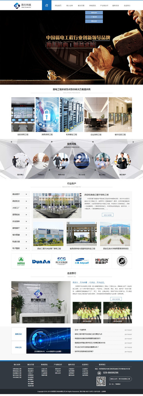 陜西思行科技有限公司是一家從事建筑智能化(弱電)工程的企業(yè),具備省公安廳安防一級(jí)、建筑智能化二級(jí)資質(zhì),為廣大企事業(yè)用戶提供方案設(shè)計(jì)、產(chǎn)品供應(yīng)、施工安裝、調(diào)試維護(hù)的"一站式"服務(wù)。思行科技主要服務(wù)對(duì)象涵蓋商業(yè)樓宇、大型工廠、高等院校、政府機(jī)關(guān)、農(nóng)業(yè)園林、電子警察、軌道交通、城市管廊、展館展廳等行業(yè),可以滿足客戶弱電工程多系統(tǒng)集成的定制化需求。