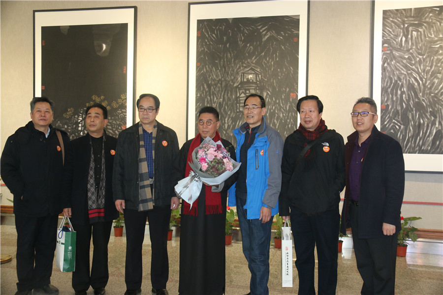 著名旅美畫家范炳南、西安古都中國書畫院楊院長與各位老師合影