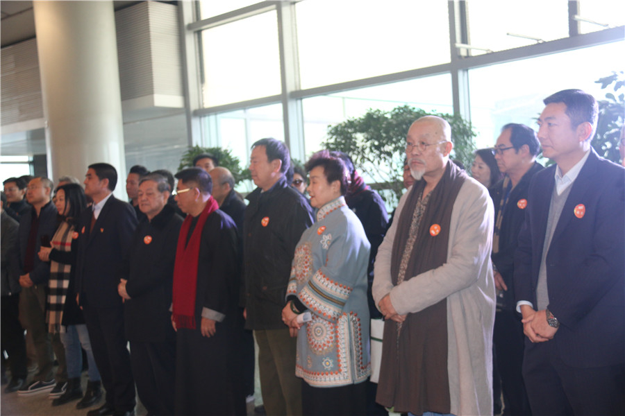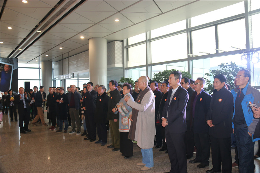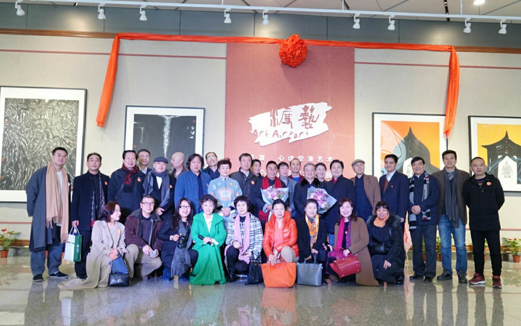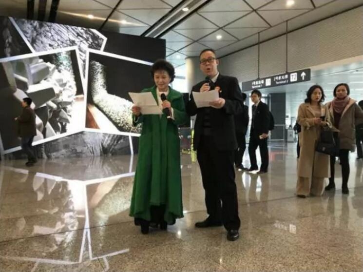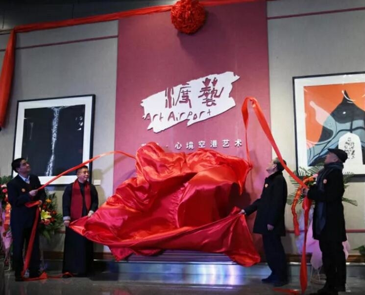 各位領(lǐng)導(dǎo)拉動手中的紅線,共同啟動藝渡·心境空港藝術(shù)展