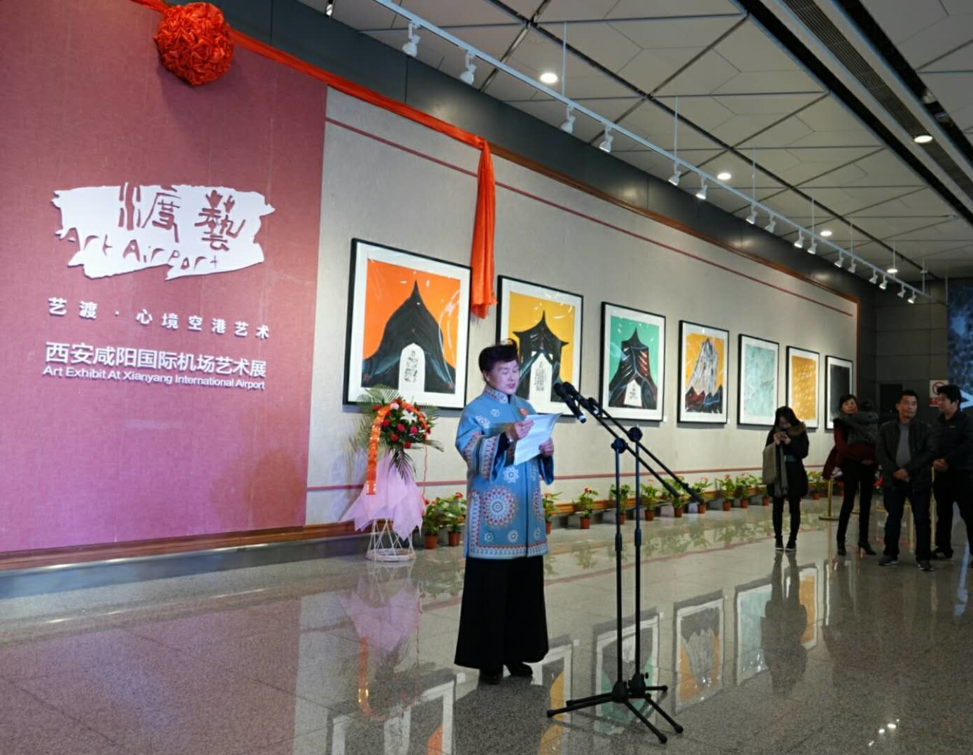 隆重的揭幕儀式開始,由著名旅美畫家范炳南先生、西安咸陽國際機場黨委書記湯小峰、西部機場集團廣告?zhèn)髅剑ㄎ靼玻┯邢薰究偨?jīng)理田曉強為“藝渡·心境空港藝術(shù)展”揭幕。