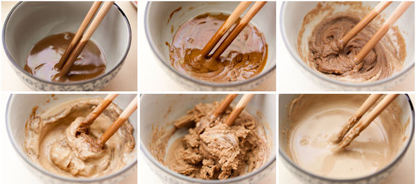 第三種:香油調(diào)制法。按照方法一的“二八”比例調(diào)制,還可以加入腐乳搗成泥,混合在一起,味道更佳。接著加入香油,順時(shí)針攪拌均勻,調(diào)到自己滿意的稀稠度即可。不建議用食用油調(diào)制,味道沒有芝麻油純香。