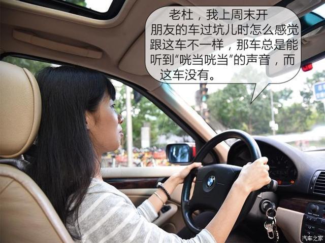 剛?cè)肼毑痪玫纳虻がF(xiàn)在駕駛技術進步的很快,有一天她開車時突然問我這個老寶馬過減速帶時的感覺怎么和我開朋友的那輛不一樣?朋友的那車感覺就稀里嘩啦的,四處亂響,就要快散架了一樣,為啥這個老寶馬感覺卻像一個大鐵塊子?聽到這我是一聲長嘆,畢生所學終于遇到傳人了。