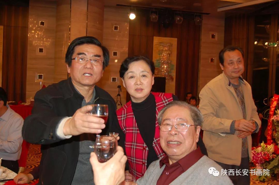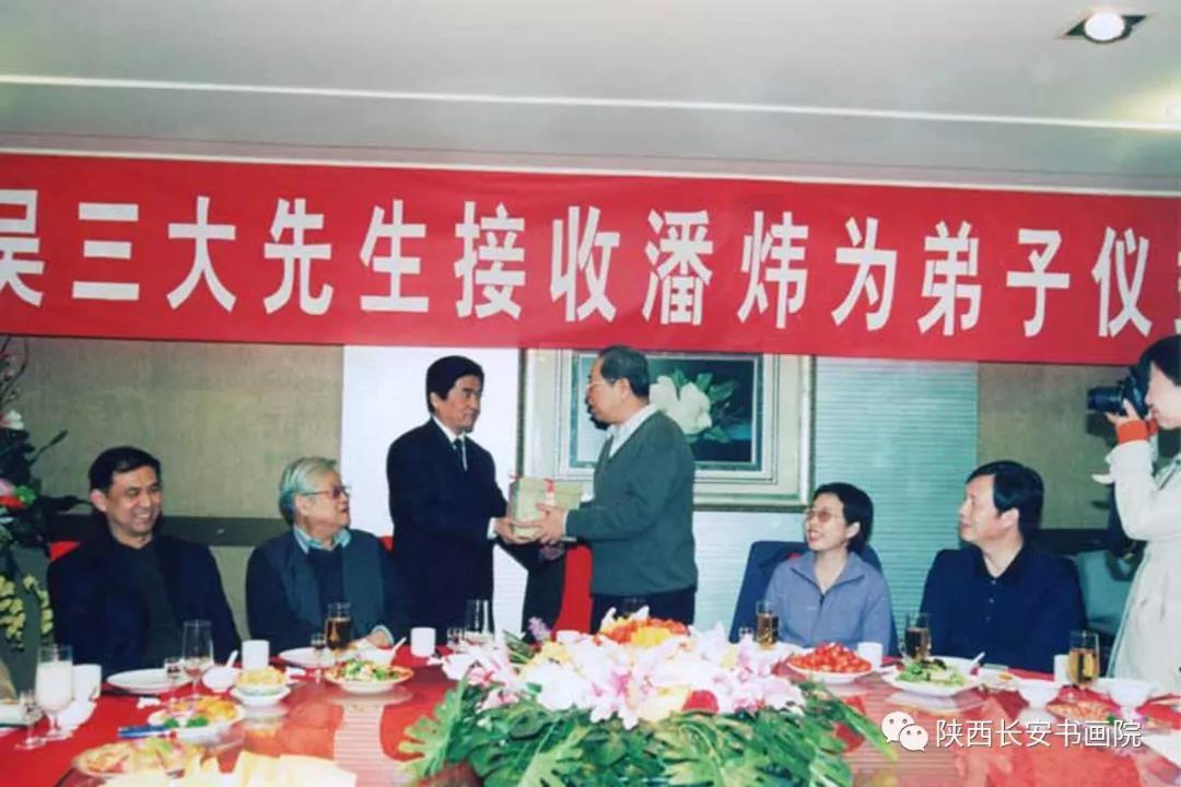 后來(lái)又有一位農(nóng)行的同志去吳先生處,提到了我的作品,吳先生仍然給予了很好的評(píng)價(jià)。這位同志一出吳先生的樓門(mén),便立即給我打電話,報(bào)告了這個(gè)好消息。于是有一天,我去拜訪吳先生,大著膽子直接說(shuō),吳老師,“我想正式拜你為師?!眳抢蠋煾吲d地說(shuō),“行么?!边@時(shí)候,我激動(dòng)的眼淚都快流出來(lái)了,多年的心愿終于可以實(shí)現(xiàn)了。于是我便和幾個(gè)同志籌備了2006年3月28日的“拜師儀式”。當(dāng)時(shí)我請(qǐng)了省委宣傳部的副部長(zhǎng)劉斌,還請(qǐng)了省文化廳的廳長(zhǎng)秦天行,但他因在北京開(kāi)會(huì),便委托副廳長(zhǎng)蔣惠莉代他前去參加,還請(qǐng)了我們省行的副行長(zhǎng)吳致生,以及省市行的幾位處長(zhǎng)和我的部隊(duì)?wèi)?zhàn)友代表、陜西長(zhǎng)安書(shū)畫(huà)研究院的代表一起出席作證。在這洋溢著喜慶氣氛的儀式上,我和吳三大先生及各位領(lǐng)導(dǎo)都講了話,大家都對(duì)我們倆表示了熱烈地祝賀。這一天也是我一生中難忘的一天。