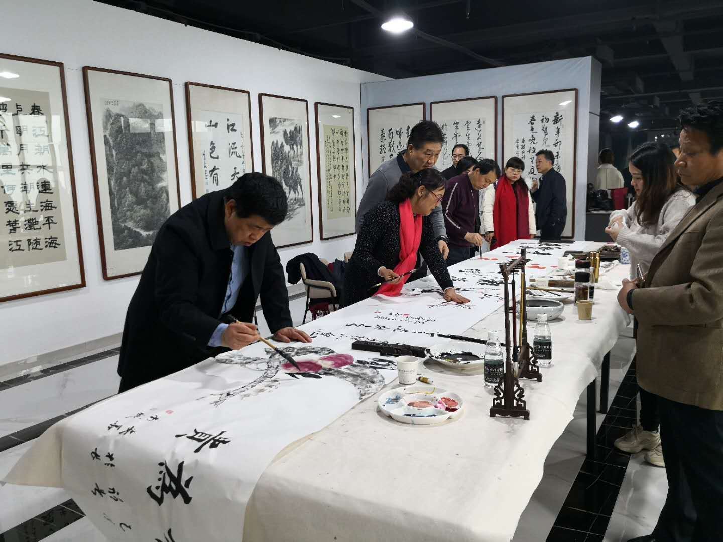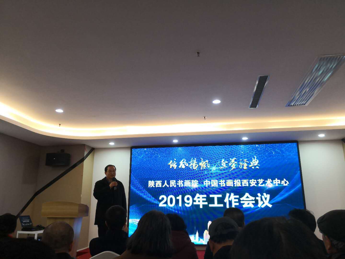 衛(wèi)院長強調(diào),去年工作成績的取得,離不開陜西省委宣傳部、陜西省文化廳、陜西省文聯(lián)、陜西省書協(xié)、陜西省美協(xié)的大力支持,離不開西安大專院校藝術(shù)學院和兄弟書畫院(協(xié)會)的熱情幫助,離不開書畫藝術(shù)家的積極參與,離不開書畫院工作人員和各位朋友的辛勤努力。他說, 2019年是中華人民共和國成立70周年,是黨政軍民舉國歡慶的一年。我們要用充沛的精神、昂揚的斗志、一流的標準創(chuàng)出一流的實績,向偉大祖國獻上一份厚禮。他特別指出,書畫家一定要勤奮鉆研理論,追摹書畫經(jīng)典,努力強身固體,攀登藝術(shù)高峰;一定要堅定自己的藝術(shù)風骨,深入學習和領會習近平文藝思想,將自己的藝術(shù)理想與黨和人民事業(yè)融為一體,做到胸中有大義、心里有人民、肩上有責任、筆下有乾坤。與會人員圍繞會議主題紛紛發(fā)言表示,要用自己的筆墨為弘揚中國精神,凝聚中國力量作出積極貢獻,新年再創(chuàng)新佳績!