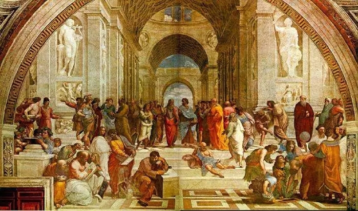 《雅典學(xué)派》是非常著名的一幅畫,在梵帝岡博物館里,畫面所有的人都在一個(gè)大廳里面,沒(méi)有地位等級(jí),大家各自干各的事情,或是在相互交流,亞里斯多德與柏拉圖平列走在一起,爭(zhēng)論得面紅耳赤。誰(shuí)都不代表真理,老師也不一定有真理;真理高于一切,在一個(gè)看不見(jiàn)的地方,每一個(gè)人都可以通過(guò)自己的理性去領(lǐng)悟真理。