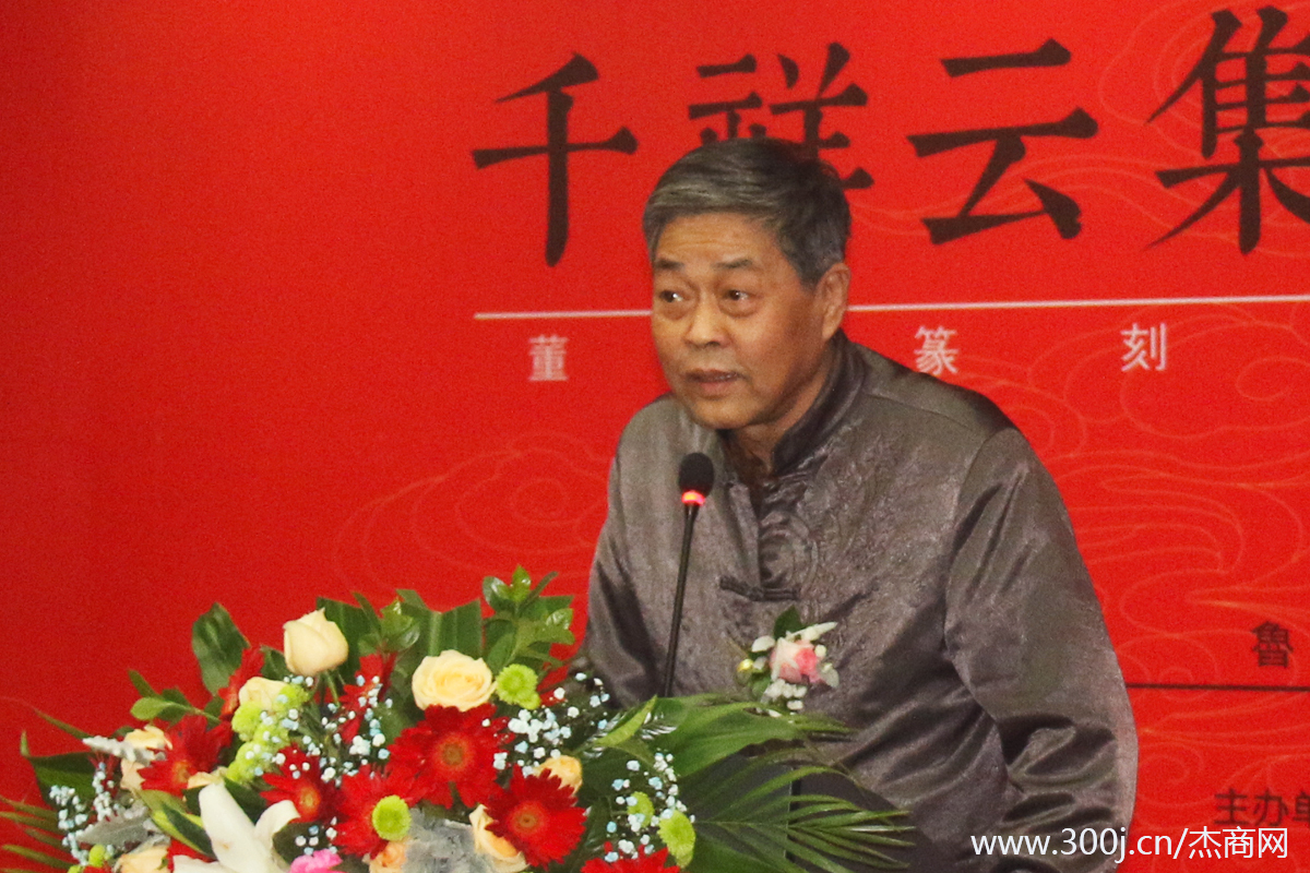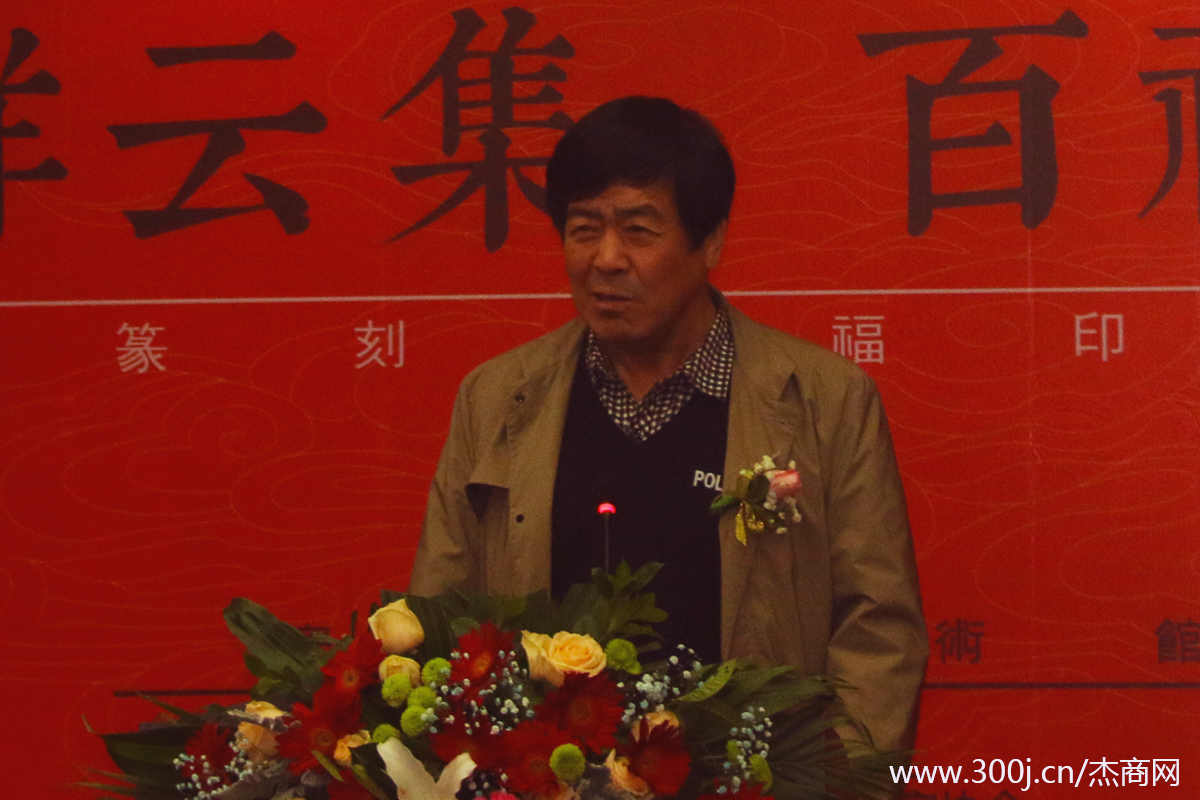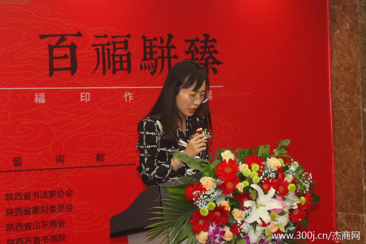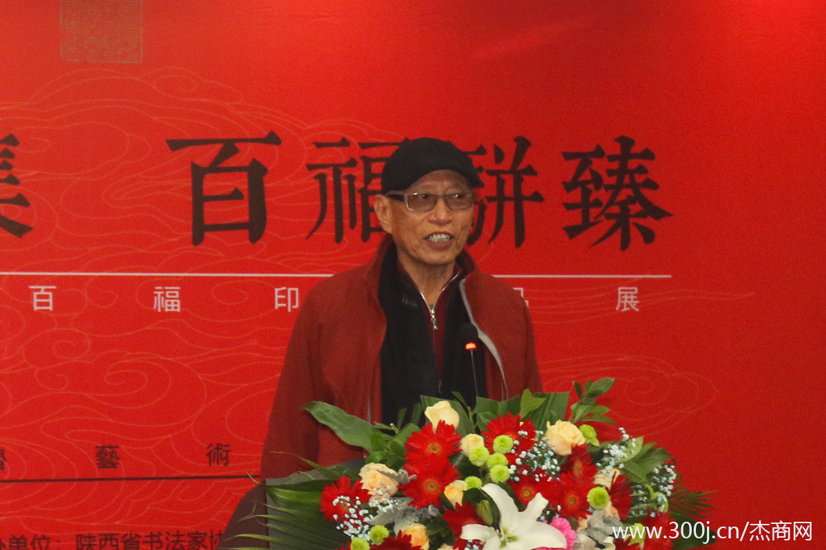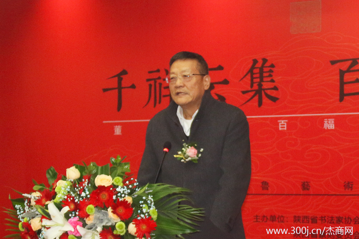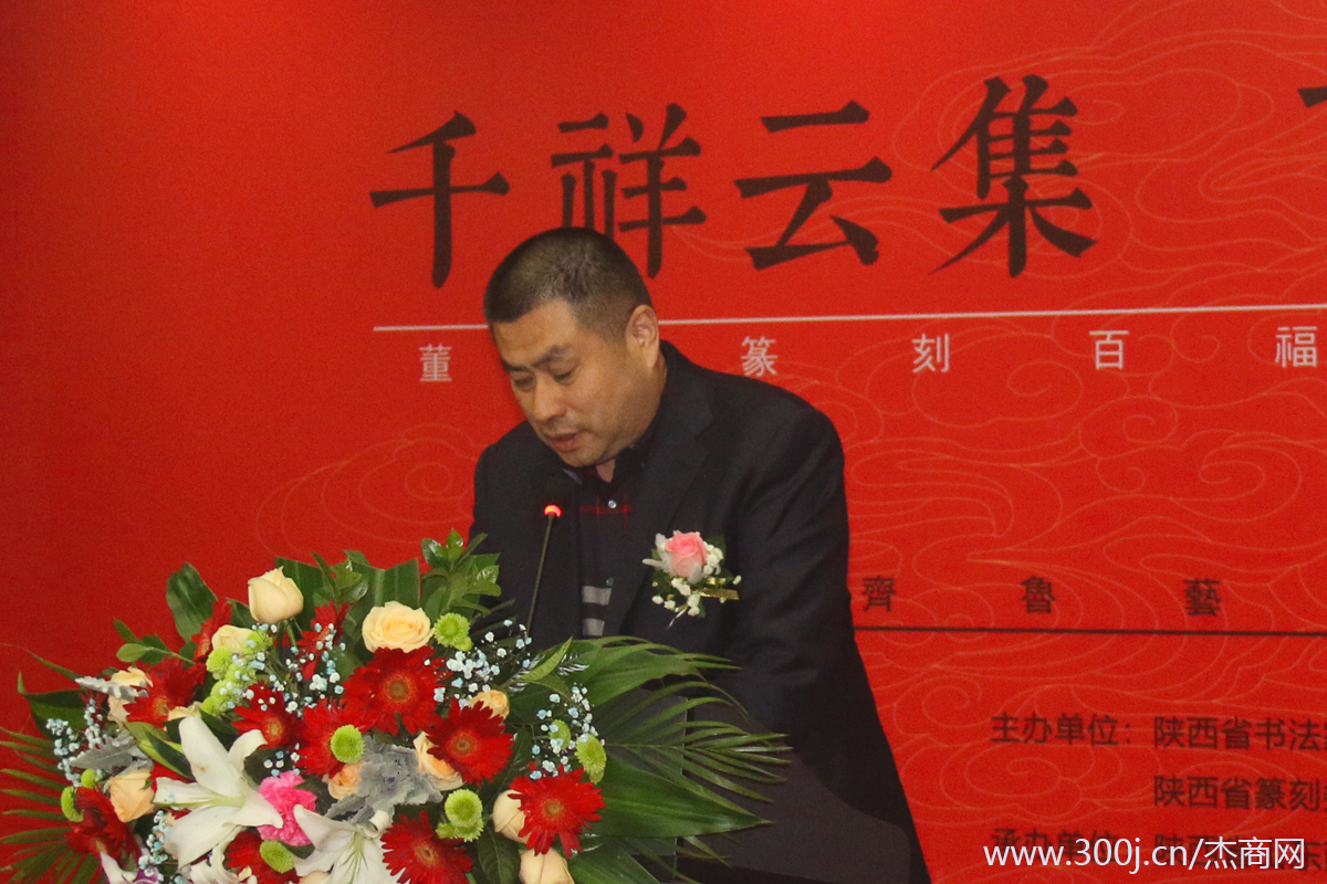 2017年11月11日下午15:00時(shí),“千祥云集 百福駢臻”董揚(yáng)篆刻百福印作品展在陜西省西安市齊魯美術(shù)館開幕。來自社會(huì)各界精英名流及數(shù)十家新聞媒體200余人共同見證了此次展覽的盛大召開。出席此次展覽的嘉賓有:陜西省于右任書法研究會(huì)會(huì)長(zhǎng)王改民,陜西省書法家協(xié)顧問、陜西省書協(xié)名譽(yù)主席李成海、趙熊、馬文彥,陜西省書法家協(xié)會(huì)顧問、西安市書法家協(xié)會(huì)名譽(yù)主席杜中信,中國(guó)書法家協(xié)會(huì)理事、陜西省書法家協(xié)會(huì)副主席史星文,陜西省書法家協(xié)會(huì)常務(wù)副主席王蒙、邱宗康,陜西省書協(xié)副主席咸陽(yáng)書協(xié)主席鄧宇春、麻天闊、劉偉群 ,陜西省篆刻委員會(huì)主任劉鵬,陜西省書協(xié)副主席、西泠印社社員、終南印社社長(zhǎng)魏杰、終南印社常務(wù)副社長(zhǎng)、西泠印社社員崎嶇、終南印社副社長(zhǎng)付海翔、侯力心、副社長(zhǎng)兼秘書長(zhǎng)謝紀(jì)元,陜西國(guó)畫院副院長(zhǎng)王志平,陜西國(guó)畫院山水畫院執(zhí)行院長(zhǎng)季秀偉,陜西省美術(shù)家協(xié)會(huì)顧問蔡嘉勵(lì)、樊昌哲、組聯(lián)部主任何虎林,畫家史永哲,西安美術(shù)學(xué)院教授呂書峰 ,陜西齊魯書畫院副院長(zhǎng)鄭培熙、秘書長(zhǎng)董明江,西安中國(guó)書法藝術(shù)博物館館長(zhǎng)龐任隆,陜西省書學(xué)院副院長(zhǎng)張英群,陜西硬筆書法家協(xié)會(huì)主席高繼承 ,陜西書法院常務(wù)副院長(zhǎng)鄭墨泉 ,西安交通大學(xué)書法藝術(shù)研究所所長(zhǎng),教授、博士后導(dǎo)師、書法家楊鎖強(qiáng),陜西師范大學(xué)碩士生導(dǎo)師 、驪山印社副社長(zhǎng)劉星,驪山印社常務(wù)副社長(zhǎng)唐澤平,驪山印社副社長(zhǎng)、西泠印社社員鄭朝陽(yáng),驪山印社副社長(zhǎng)徐偉聰、胡承海 ,西安于右任書法學(xué)會(huì)副會(huì)長(zhǎng)兼秘書長(zhǎng)、驪山印社副社長(zhǎng)王艷旗,陜西書協(xié)副秘書長(zhǎng)張魁 ,篆刻家劉五四,陜西中國(guó)畫研究院院長(zhǎng) 謝濤 ,西安美術(shù)家協(xié)會(huì)秘書長(zhǎng)高山 ,咸陽(yáng)市文聯(lián)黨組書記賈黎明,咸陽(yáng)市文聯(lián)組聯(lián)部部長(zhǎng)李軍,咸陽(yáng)市美術(shù)家協(xié)會(huì)副主席陳武,西安中國(guó)畫院畫家惠敏,作家石崗等。開幕式由李斌何栩栩主持。