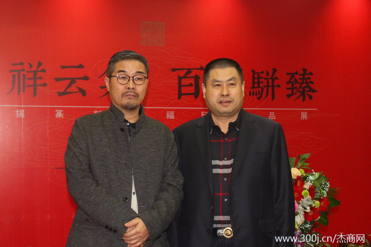 (左)西泠印社社員、驪山印社社長(zhǎng)董揚(yáng)與(右)陜西齊魯書畫院名譽(yù)院長(zhǎng)、收藏家孫忠寶合影留念