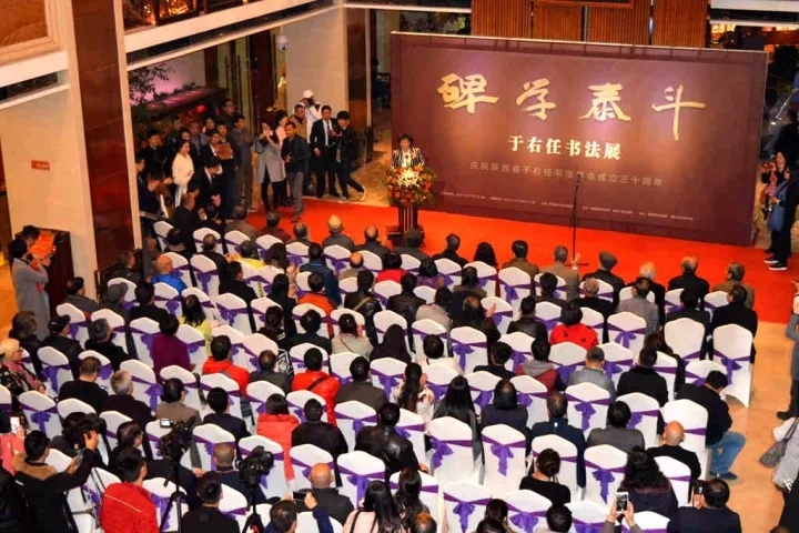 為貫徹黨的十九大精神,弘揚(yáng)中華優(yōu)秀傳統(tǒng)文化。值此于右任先生誕辰一百三十八周年,陜西省于右任書法學(xué)會(huì)成立卅周年之際,由陜西省于右任書法學(xué)會(huì)主辦,陜西嘉泰美術(shù)館、西安廣成大酒店聯(lián)合西安德風(fēng)堂畫廊、西安龍藝堂美術(shù)館,篩選具有于右任各個(gè)時(shí)期特點(diǎn)的書法真跡舉辦“碑學(xué)泰斗·于右任書法展”暨“于右任學(xué)術(shù)研討會(huì)”于2017年11月14日在西安廣成大酒店盛大開幕。同時(shí)由鐘明善、李成海為學(xué)術(shù)顧問,祁碩森主編,張覺天執(zhí)行主編的《碑學(xué)泰斗·于右任書法集》出版發(fā)行。旨在弘揚(yáng)和緬懷“曠代草圣”“百年巨匠”“碑學(xué)泰斗”于右任先生的大師風(fēng)范。
