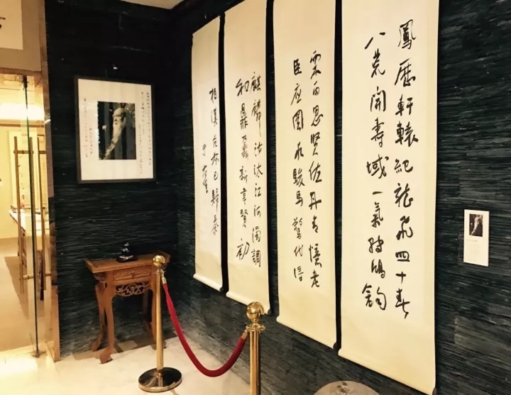 趙博、張覺天陪同于中令老師參觀“碑學(xué)泰斗·于右任書法展”