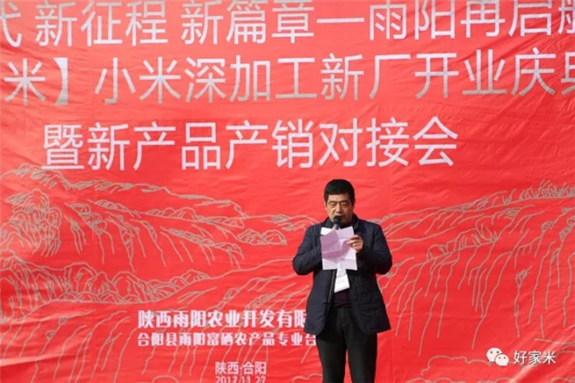 11月27日,陜西雨陽(yáng)農(nóng)業(yè)開發(fā)有限公司彩旗飄揚(yáng),鑼鼓喧天,小米深加工新廠開業(yè)慶典暨產(chǎn)品推介招商活動(dòng)圓滿舉行。