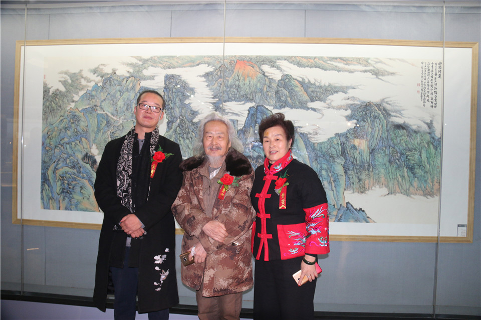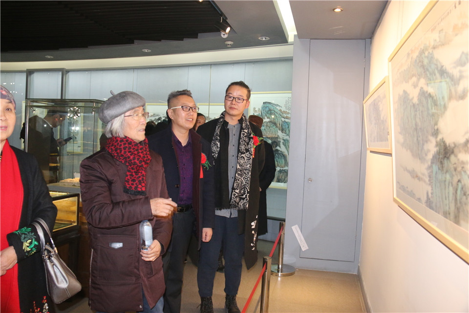 陜西美術(shù)家協(xié)會顧問、山水畫家馬繼忠老師與杰商網(wǎng)董事長劉炳齊、藝術(shù)家何岳虹欣賞畫展