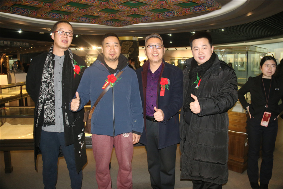 藝術(shù)家何岳虹、西安美術(shù)學院花鳥工作室講師、花鳥畫家焦永峰、杰商網(wǎng)董事長劉炳齊、本次展覽主持人李偉偉