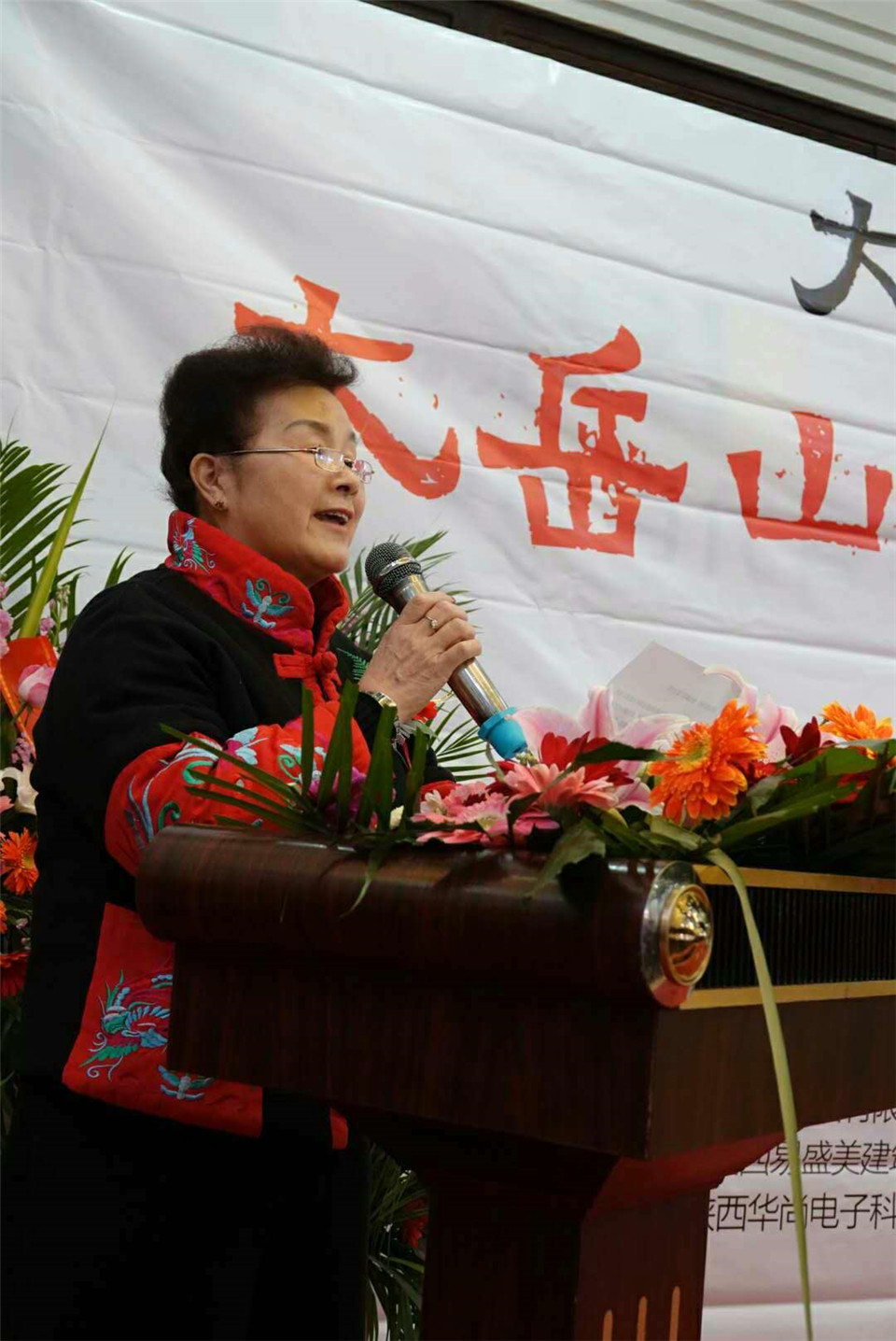 西安古都中國書畫院院長楊彩玲同老師們聆聽開幕式